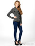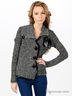 Детали: длинный рукав, V-образный вырез, отложной ворот, имитация застежки на пуговицы, полочка декорирована брошью и тесьмой с пайетками