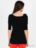 Элегантный джемпер прямого силуэта из тонкого джерси. Округлый вырез горловины декорирован шифоновыми вставками, укороченный рукав-реглан. Великолепно сочетается с нарядной юбкой и с классическими брюками.