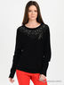 Мягкий вязаный джемпер прямого силуэта с округлым вырезом горловины. Длинный цельнокроеный рукав, полочка декорирована стразами и ажурной вязкой. Элегантный и нарядный джемпер покорит Ваше сердце своей мягкостью и изысканностью.