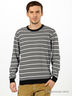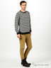 Детали: круглый вырез горловины, длинный однокроеный рукав заужен к запястью, по низу изделия и рукава трикотажная резинка, изделие выполнено расцветки в горизонтальную полоску.