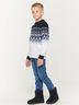 Джемпер детский прямого кроя. Модель с длинным рукавом, круглым вырезом. Джемпер оформлен принтом.