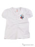 Джемпер трикотажный из кулирки (плотность 160г/м2) для девочек с коротким рукавами. Горловина обработана бейкой из основного материала. На горловине две кнопки. Спереди сборки и печатный рисунок. Рукава-фонарики внизу обработаны краеобметочной строчкой.
