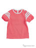 Джемпер трикотажный из кулирки (плотность 160г/м2) для девочек с коротким рукавами. Горловина обработана бейкой из основного материала. На горловине две кнопки. Рукава-фонарики декорированы тремя рядами рюш. Низ рукавов собран на резинку.