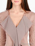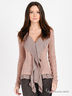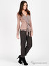 Детали: V-образный вырез горловины, длинный рукав, имитация застежки на пуговицы, шифоновые вставки на полочке, шифоновый хлястик-завязка, ажурная вязка