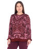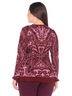 Джемпер выполнен жаккардовой вязкой средней плотности. По полочке и спинке проходят рельефные швы, что дает хорошую посадку изделия на любую фигуру. Низ изделия и рукавов оформлены одноцветным трикотажным валаном. Вырез горловины круглый без застёжки. Модель хорошо смотрится в комплекте как с юбкой, так и с брюками.