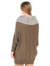 Джемпер выполнен вязкой средней плотности. Рукав "летучая мышь" 3/4. Низ изделия и рукава оформлены трикотажной резинкой. Воротник 2-цветный - "хомут".