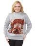 Джемпер выполнен вязкой средней плотности. На полочке принт в виде морды Бульдога. Вырез горловины круглый.