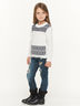 Джемпер детский прямого кроя. Модель с длинным рукавом, круглым вырезом. Джемпер оформлен принтом.