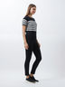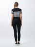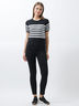 Выразительный джемпер с контрастными полосами. Полуприлегающий силуэт, округлая линия горловины, короткие рукава. Модель непременно впишется в элегантные и комфортные образы, а мягкая пряжа позаботится о вашем комфорте.