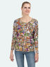 Оригинальный джемпер с абстрактным принтом. Свободный силуэт, Круглый вырез горловины, спущенная линия плеча и рукава "летучая мышь" длиной 7/8. Эффектная модель для повседневного отдыха.