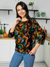 Трикотажный джемпер из кулирного хлопкового полотна. Прямой силуэт, округлый вырез горловины и втачной рукав длиной 3/4. Отличный вариант для создания женственного образ.