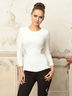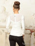 Джемпер с длинными рукавами и округлым вырезом горловины. Сбоку вставки из контрастной по фактуре ткани. Низ немного расклешен, получается имитация небольшой баски. Отличный вариант на каждый день.