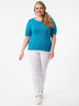 Восхитительный джемпер полуприлегающего силуэта голубого цвета с втачными рукавами . Джемпер выполнен в технике «ручного вязания» из натуральных хлопковых нитей. Круглый вырез, низ рукавов и низ изделия обработаны двусторонней лицевой бейкой.