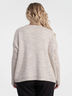 Обаятельный джемпер свободного силуэта бежевого цвета. Джемпер выполнен в технике «ручного вязания» из нитей с содержанием шерсти. Круглый вырез изделия обработан двусторонней лицевой бейкой. Джемпер со спущенной проймой, рукава отвязаны узором «английская» резинка. По низу изделия манжет. Аксессуары в комплект не входят.