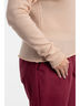 Мягкий джемпер полуприлегающего силуэта пудрового цвета. Джемпер выполнен в технике ручного вязания из натуральных нитей с добавлением шерсти. Джемпер с воротником хомут и втачными рукавами. Аксессуары в комплект не входят. Длина изделия по спинке от плечевого шва до низа изделия — 62 см.