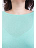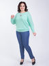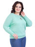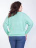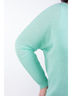 Стильный джемпер свободного силуэта мятного цвета с цельнокроеными рукавами. Джемпер выполнен в технике ручного вязания из нитей с содержанием хлопка. Круглый вырез изделия обработан двусторонней лицевой бейкой. По низу изделия и рукавов — манжеты.