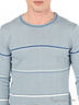 Детали: круглый вырез; окантовка выреза, манжеты и нижняя резинка в рубчик; принт - полоска