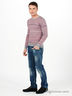 Детали: круглый вырез; окантовка выреза, манжеты и нижняя резинка в рубчик; принт - полоска