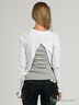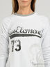 Оригинальный джемпер-двойка. Нижний джемпер цвета серый меланж. Круглая горловина. Длинные рукава реглан. Верхний джемпер белого цвета с принтом и бисерной вышивкой. Круглая горловина. длинные рукава реглан. На спине разрез с нахлестом.