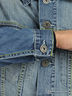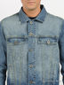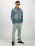 Классическая мужская джинсовка прямого покроя. Отложной воротник. Застегивается на болты. Длинные рукава с манжетами на болтах. На полочке два накладных кармана с клапанами на болтах и два прорезных. Декорирована контрастной прострочкой.