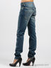 Стильные джинсы в винтажном стиле свободного покроя. Отрезной пояс. есть шлевки для ремня. пять карманов. Застегиваются на болты. Сзади треугольная кокетка с необработанными краями.