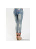 Джинсы зауженного кроя. Модель дополнена спереди застежкой на молнию и пуговицу. На поясе - шлевки для ремня. Превосходный вариант для создания стильного, повседневного образа.