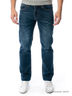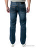 Стильные джинсы с застежкой на молнию и пуговицу. Спереди два втачных кармана, сзади - два накладных. Контрастная прострочка швов. Изделие с эффектом потертости. Отличный вариант для повседневной носки. Прямая модель для мужчин с невысокой талией.