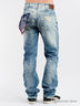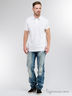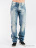 Модные джинсы прямого кроя выполнены из хлопка. Модель дополнена застежкой на пуговицу и молнию. По бокам - втачные карманы, сзади - накладные. Изделие декорировано эффектом потертости.