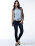 Джинсы зауженного кроя выполнены из 100% хлопка. Модель дополнена спереди застежкой на молнию и пуговицу, а так же шлевками для ремня на поясе. По бокам - втачные карманы, сзади - накладные. Изделие украшено декоративными элементами. Отличный вариант на каждый день.