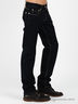 Эффектные джинсы прямого кроя из плотного денима. Застежка на молнию и пуговицу. Отрезной пояс со шлевками. Три передних кармана, два задних кармана. Контрастная прострочка. Отлично будут сочетаться с различными по фасону и фактуре вещами.