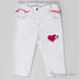 Стильные джинсы для девочки. Детали: застежка на пуговицу, спереди удобные втачные карманы, сзади накладные, к поясу пришиты шлевки для ремня, изделие декорировано оборками и нашивками.