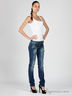 Очаровательные женские джинсы, слегка зауженного пятикарманного кроя. Застежка на молнию и пуговицу. К поясу пришиты шлевки для ремня. Изделие украшено декоративными потертостями. В изделии будет комфортно за счет свойств, которыми обладает хлопковая ткань: мягкость, хорошая поглощающая способность в теплое время. Также преимуществом хлопка является его натуральность и гипоаллергенность, а это значит, что вещи, изготовленные из хлопка, не навредят Вашему здоровью.