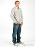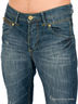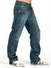 Темные вареные, джинсы прямого кроя. Застежка на молнию и пуговицу. Пять карманов. Втачной пояс со шлевками для ремня.