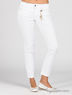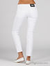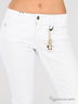Яркие белые джинсы. Прямой силуэт. Отрезной пояс со шлевками для ремня. Застежка на молнию и пуговицу. Классический крой с пятью карманами. В дополнение к изделию идет металлический брелок-подвеска на карабине.