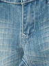Джинсы прямого силуэта с застежкой на пуговицу и молнию. Отрезной пояс с внутренней регулирующей резинкой и пришитыми шлевками. Три передних кармана, три задних кармана. Анатомический крой колен. Эффект потертости.