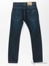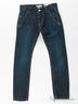 Джинсы прямого силуэта с застежкой на пуговицу и молнию. Отрезной пояс с внутренней регулирующей резинкой и пришитыми шлевками. Три передних кармана, два задних кармана. Эффект потертости.