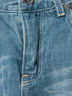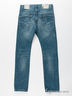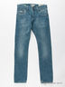 Джинсы прямого силуэта с застежкой на пуговицу и молнию. Отрезной пояс с внутренней регулирующей резинкой и пришитыми шлевками. Три передних кармана, два задних кармана. Эффект потертости.