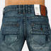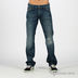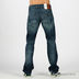 Джинсы мужские синего цвета. Классический крой с пятью карманами. Задние карманы с клапанами, застегиваются на пуговицу. Слегка клешеный силуэт. Отрезной пояс со шлевками для ремня. Застежка на пуговицы. Декоративная прострочка контрастного цвета.