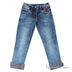 Стильные джинсы для девочки с отрезной поясом. Застегиваются на молнию и пуговицу. Декорированы вышивками и оригинальными отворотами.