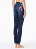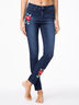 Модель зауженного кроя со средней посадкой. Классический темный деним с яркими и стильными акцентами в виде вышивки. Эта модель отлично садится по фигуре и обрисовывает силуэт. Очень нежная и романтическая вышивка станет украшением любого гардероба, подчеркнет нежность и очарование женщины.