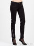 Джинсы зауженного покроя. Два втачных кармана спереди и два накладных кармана сзади. Внизу по бокам присутствуют декоративные элементы в виде молний. Передние карманы декорированы контрастной тесьмой.