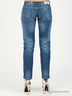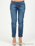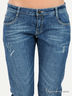 Детали: втачной пояс и шлевки для ремня, застежка на молнии и на пуговицах, пять карманов, оригинальная нашивка декорированная стразами и бусинами сзади, брючины заужены к низу.