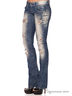 Модные джинсы из хлопкового материала. Отрезной пояс со шлевками для ремня. Застежка на пуговицу и молнию. Слегка расклешенные брючины. Модель декорирована потертостями. Будьте неотразимы!