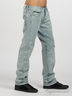 Классические мужские джинсы прямого покроя голубого цвета. Отрезной пояс. Есть шлевки для ремня. Застегиваются на молнию и пуговицу. Пять карманов. Сзади треугольная кокетка.