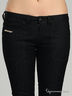 Стильные женские джинсы. Плотная ткань, пять карманов. Зауженный силуэт джинс. Застежка на пуговицы. К поясу пришиты шлевки для ремня. Низ изделия посажен на широкую трикотажную резинку.