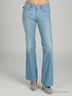 Стильные женские джинсы. Плотная ткань, пять карманов. Расклешенный силуэт джинс. Застежка на молнию и пуговицу. К поясу пришиты шлевки для ремня. Изделие украшено декоративными потертостями.