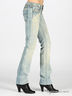 Стильные женские джинсы. Плотная ткань, пять карманов. Прямой силуэт джинс. Застежка на молнию и пуговицу. К поясу пришиты шлевки для ремня. Изделие украшено декоративными потертостями и эффектом старения.
