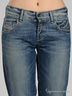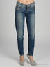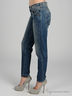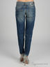 Стильные женские джинсы. Плотная ткань, пять карманов. Слегка зауженный силуэт джинс. Застежка на пуговицы. К поясу пришиты шлевки для ремня. Изделие украшено декоративными потертостями.