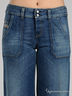 Стильные женские джинсы. Плотная ткань, пять карманов. Расклешенный силуэт джинс. Застежка на пуговицы. К поясу пришиты шлевки для ремня.