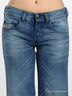 Стильные женские джинсы. Плотная ткань, пять карманов. Расклешенный силуэт джинс. Застежка на пуговицы. К поясу пришиты шлевки для ремня. Изделие украшено декоративными потертостями.